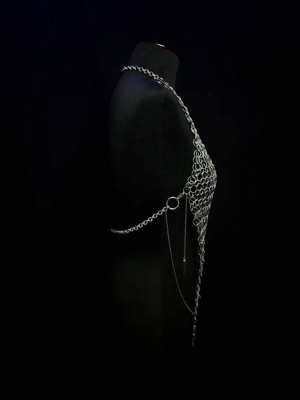 Prenda hecha a mano con técnica ''chainmail'' realizada con acero galvanizado e inoxidable. Prenda única. Tallaje ajustable.